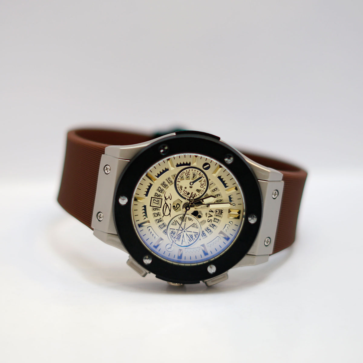 TIMAS Chronograph Sport Watch with Brown Leather Strap